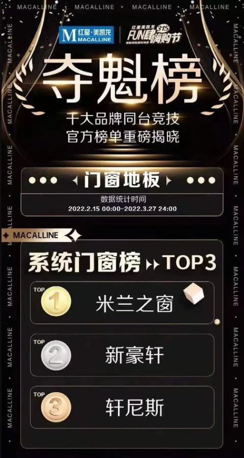 3月27日,紅星美凱龍公布“315FUN肆嗨購節(jié)”奪魁榜,米蘭之窗榮耀登頂,感謝消費(fèi)者的認(rèn)可,米蘭之窗用心智造高品質(zhì)門窗,不負(fù)期待。