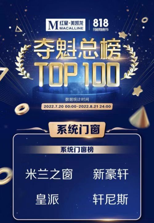 9月4日,紅星美凱龍公布“818FUN肆嗨購節(jié)”奪魁榜,米蘭之窗榮耀登頂,這是繼315之后再次奪魁,感謝消費(fèi)者的高度認(rèn)可,以口碑典范佇立行業(yè)之巔,推動系統(tǒng)門窗行業(yè)健康發(fā)展。